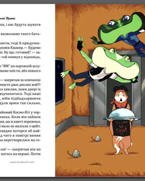 Мотиваційна казка вчить дітей доводити справи до кінця, та не відступати перед труднощами. Книга дуже добра та весела! Сюжет: молодий український жаб Дрімко мріє полетіти в космос. Подорожуючи, він зустрічає Космо-Жаба капітана Квакера, з планети Жаб-Технарів Зелін. Разом, жабенята потрапляють в космічний полон на кораблі загадкових піратів – Космо-Котів з Рудого Братства. Ситуація безвихідна, та наші герої ніколи не здаються!