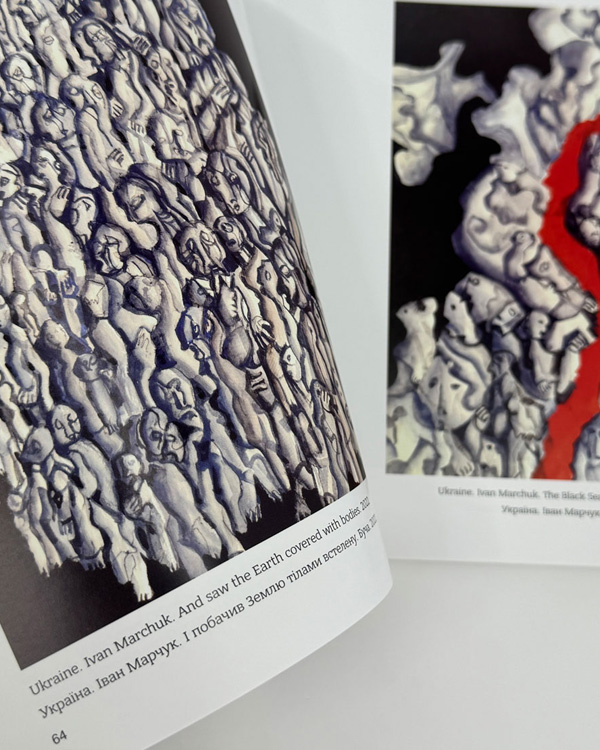 Це не просто книга - це приголомшливий твір, що остане літопис часів війни. Видання містить твори 200 митців з України, Німеччини, Швейцарії, Іспанії, Бельгії, Грузії, Польщі, Албанії, Ізраїлю та багатьох інших країн.