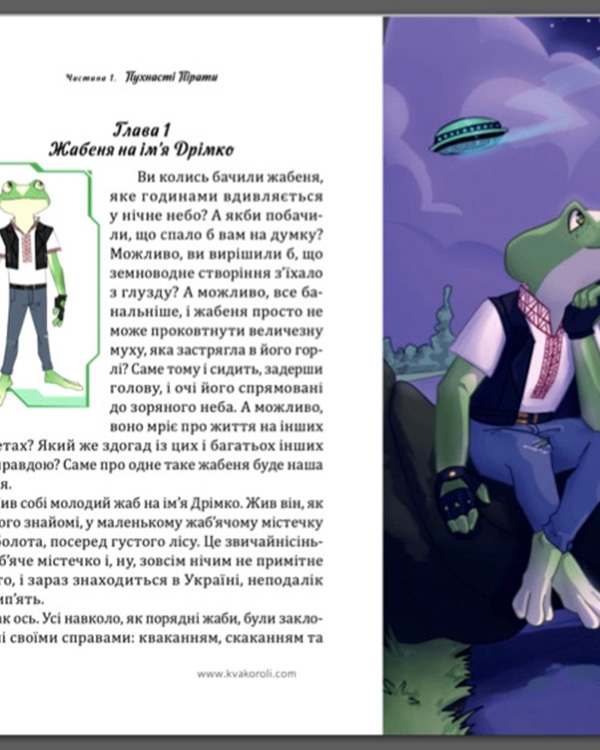 Мотиваційна казка вчить дітей доводити справи до кінця, та не відступати перед труднощами. Книга дуже добра та весела! Сюжет: молодий український жаб Дрімко мріє полетіти в космос. Подорожуючи, він зустрічає Космо-Жаба капітана Квакера, з планети Жаб-Технарів Зелін. Разом, жабенята потрапляють в космічний полон на кораблі загадкових піратів – Космо-Котів з Рудого Братства. Ситуація безвихідна, та наші герої ніколи не здаються!